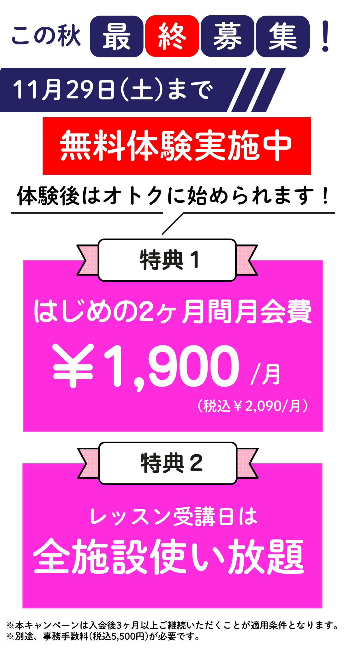 | マンスリー3 U29 | 8,000円/月(税込8,800円) | 月3回レッスンが受講できます |