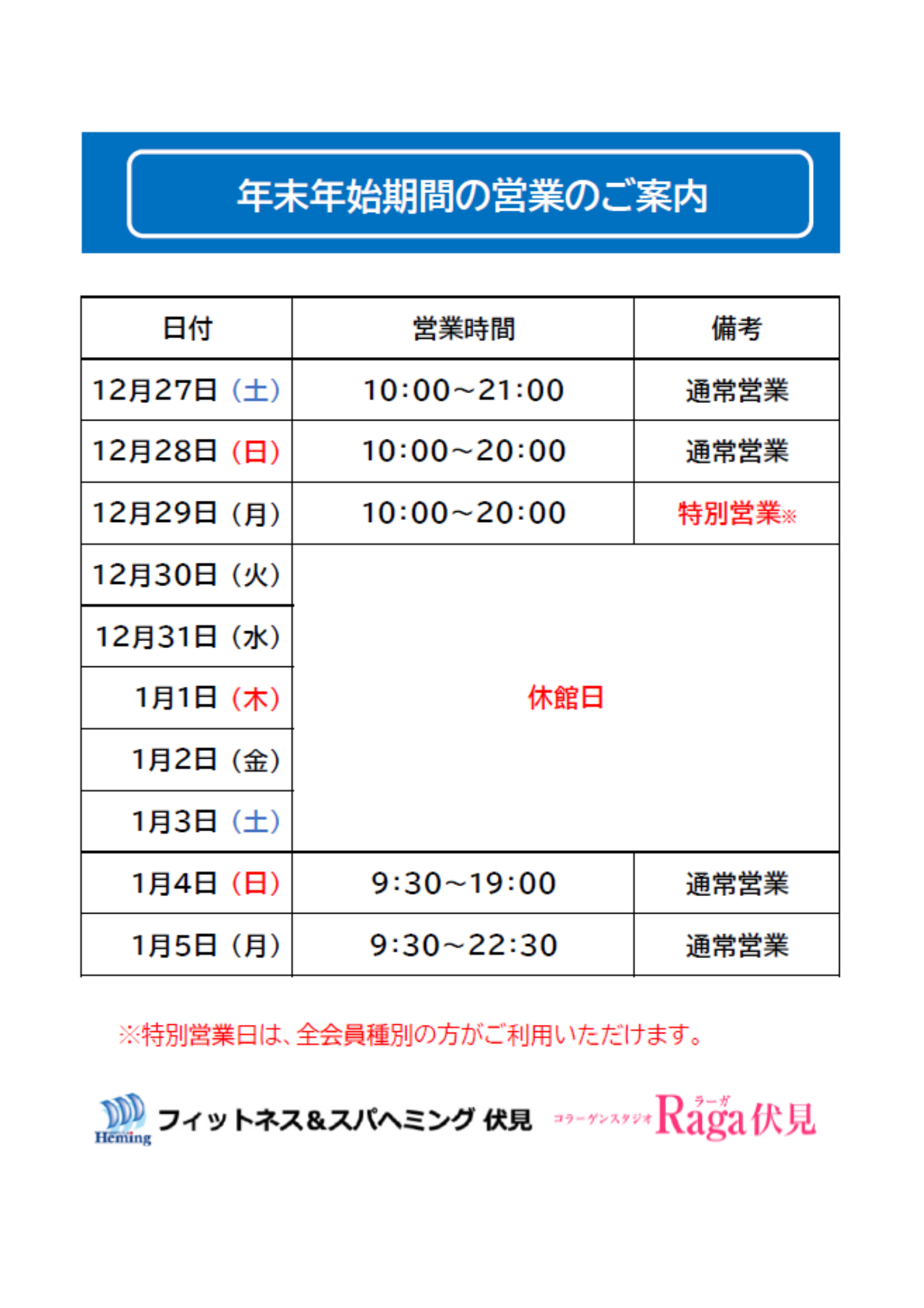 Warning: unlink(/home/hotyoga-raga/www/wp-content/uploads/sites/4/mw-wp-form_uploads/.htaccess): No such file or directory in /home/hotyoga-raga/www/wp-content/plugins/mw-wp-form/classes/models/class.directory.php on line 202 年末年始営業時間のお知らせ | コラーゲン&ピラティススタジオ Raga(ラーガ)伏見